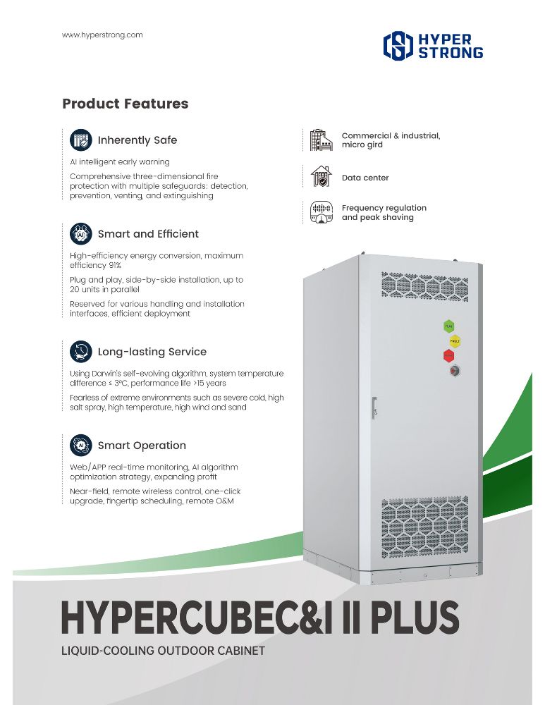 HyperStrong Technology Co., LTD. un integrador y proveedor de servicios de BESS líder a nivel mundial. Fundada en 2011, con una trayectoria de 14 años de investigación y desarrollo, así como experiencia adquirida a través de más de 400 proyectos de BESS y 45 GWh de implementación, HyperStrong ofrece una cartera de productos BESS y soluciones integrales para todo el espectro de aplicaciones comerciales e industriales y a gran escala. Habiendo construido cinco bases de fabricación inteligentes, tres centros de I+D, dos laboratorios de pruebas y un centro de marketing global, HyperStrong permite a los clientes de todo el mundo alcanzar sus objetivos de transición energética y neutralidad de carbono.